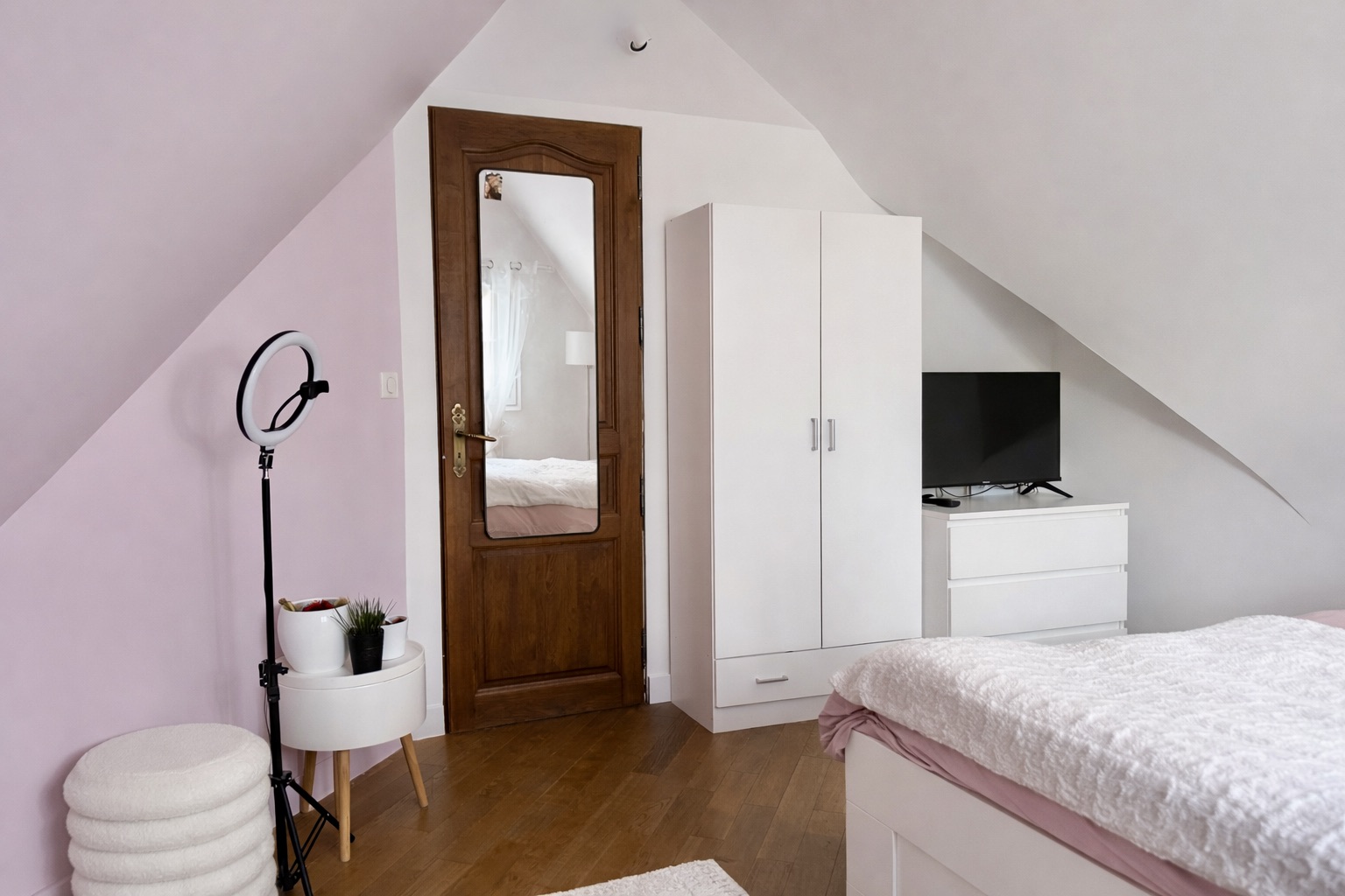 Les choix de couleurs sobres et de touches rosées permettent de conjuguer esthétique et confort, tout en offrant un environnement évolutif qui pourra accompagner leur adolescence.